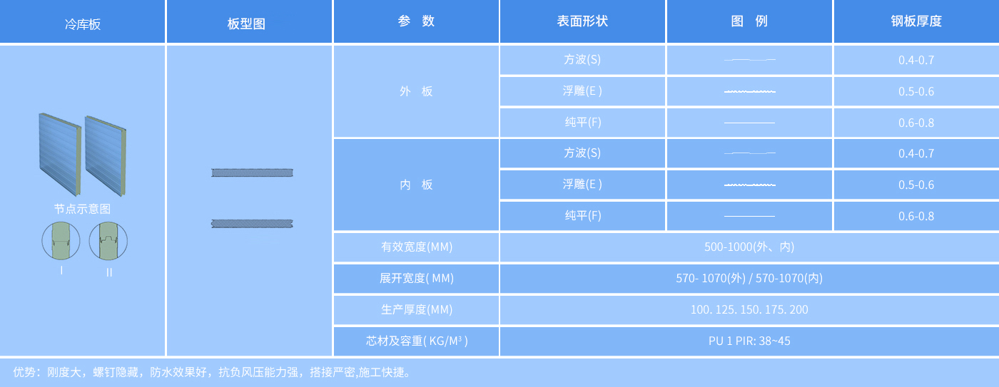 → 自重轻,外观优美,有效解决冷藏工业温差。